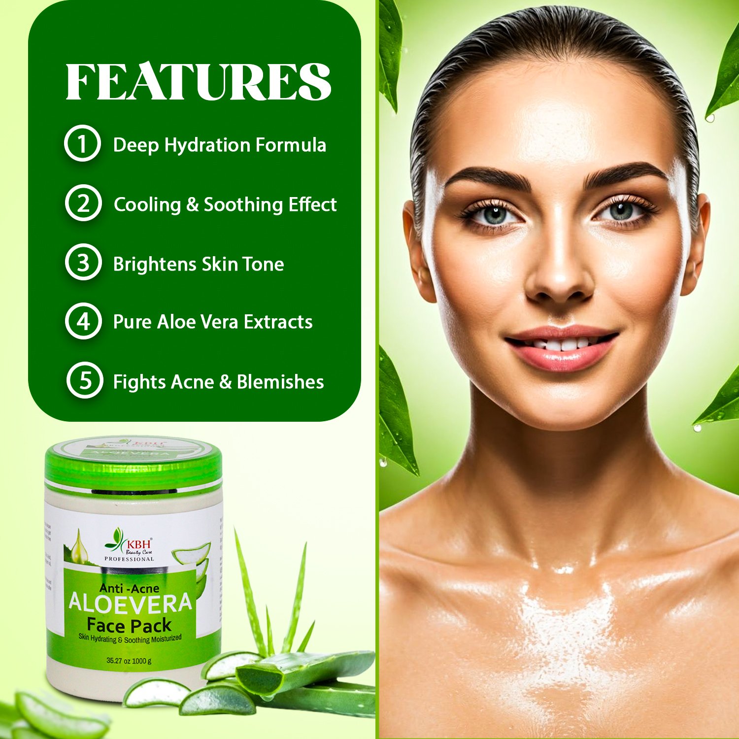 The Aloe Vera Face Pack is infused with natural aloe vera, known for its soothing, moisturizing, and rejuvenating properties. It helps calm irritated skin, reduce redness, and restore hydration, leaving your face soft, smooth, and refreshed. Lightweight and easy to apply, it is suitable for all skin types and perfect for regular skincare routines.