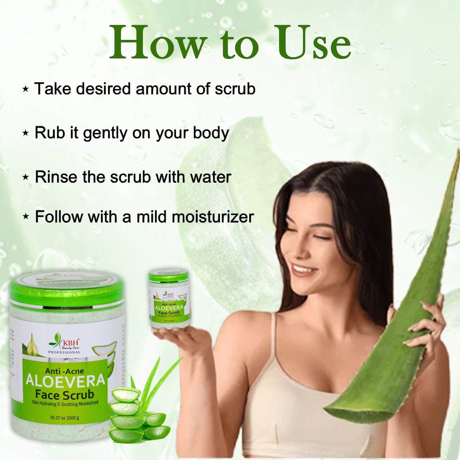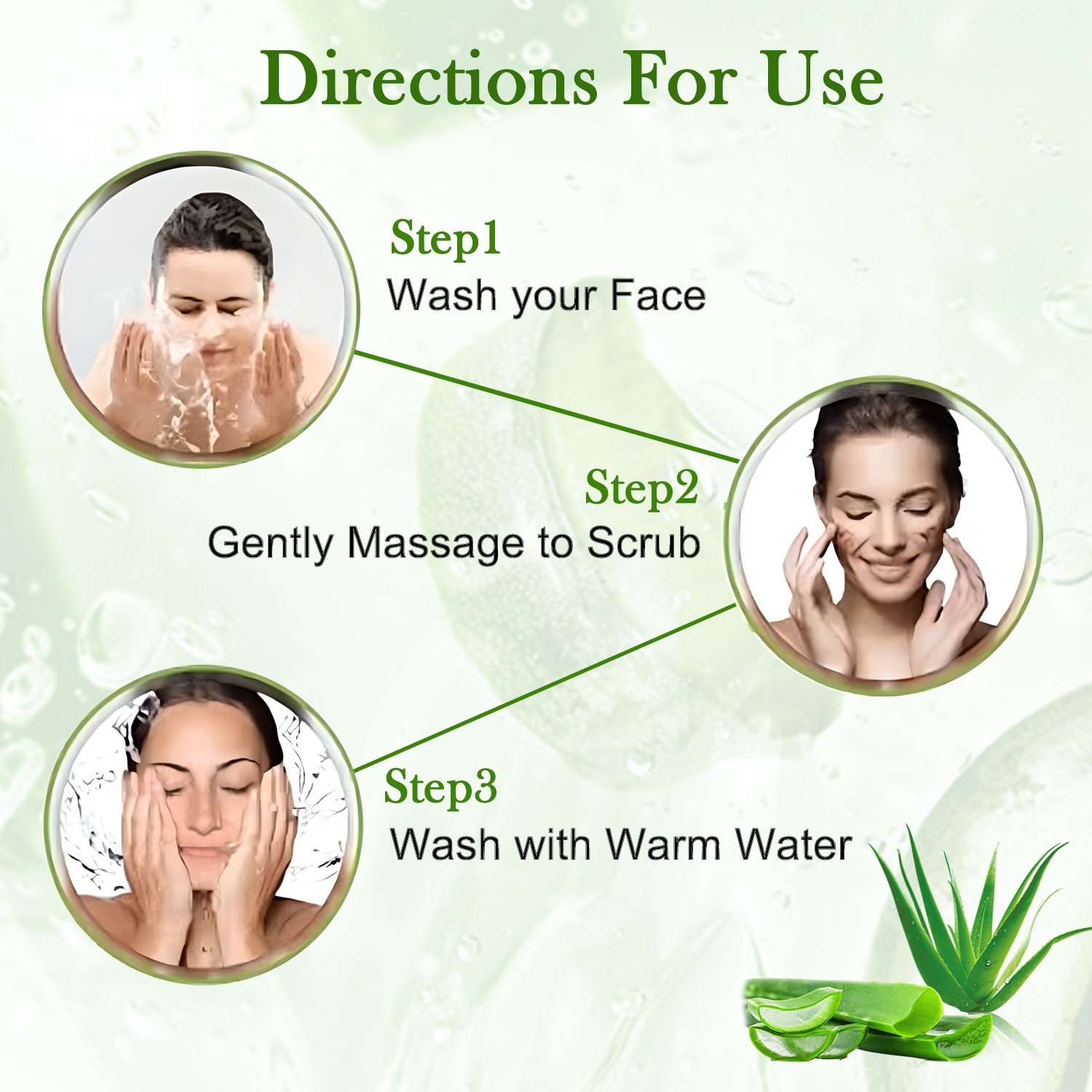 The Aloe Vera Face Scrub is infused with natural aloe vera and mild exfoliating particles that help cleanse, smooth, and rejuvenate the skin. It removes dirt, impurities, and dead skin cells while hydrating and soothing, leaving your face soft, refreshed, and radiant. Lightweight and non-irritating, it is suitable for all skin types and ideal for regular use.