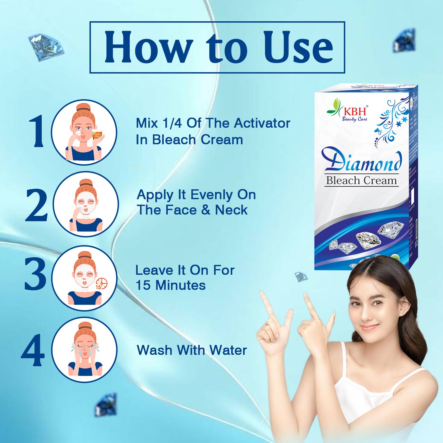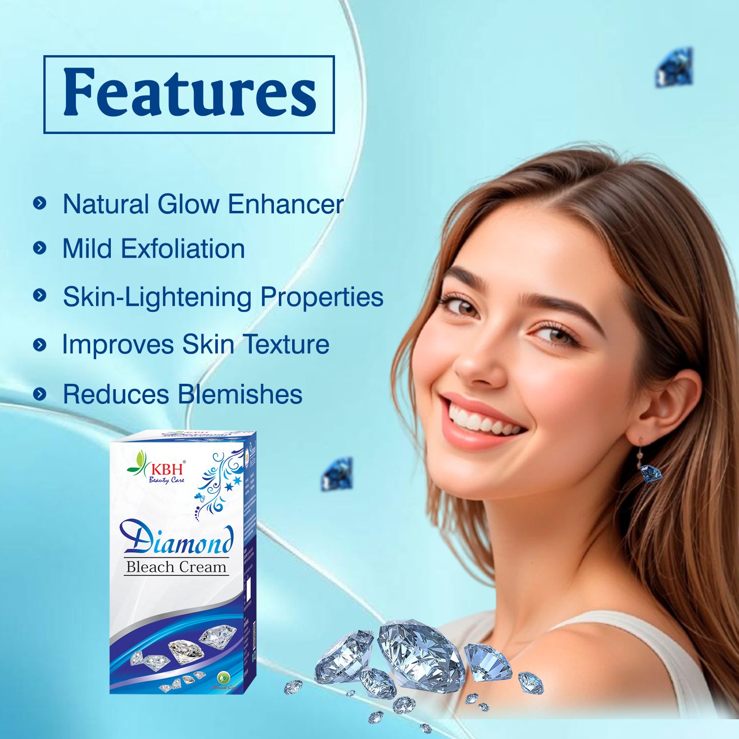 Experience instant brightness and a diamond-like glow with our Diamond Bleach Cream. It helps lighten facial hair, enhance skin radiance, and reveal a smoother, more luminous complexion.