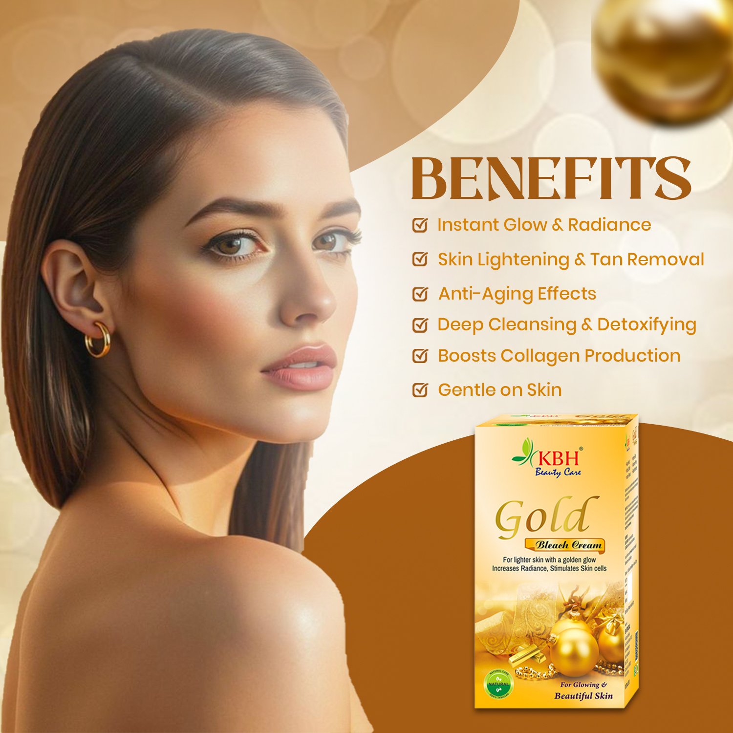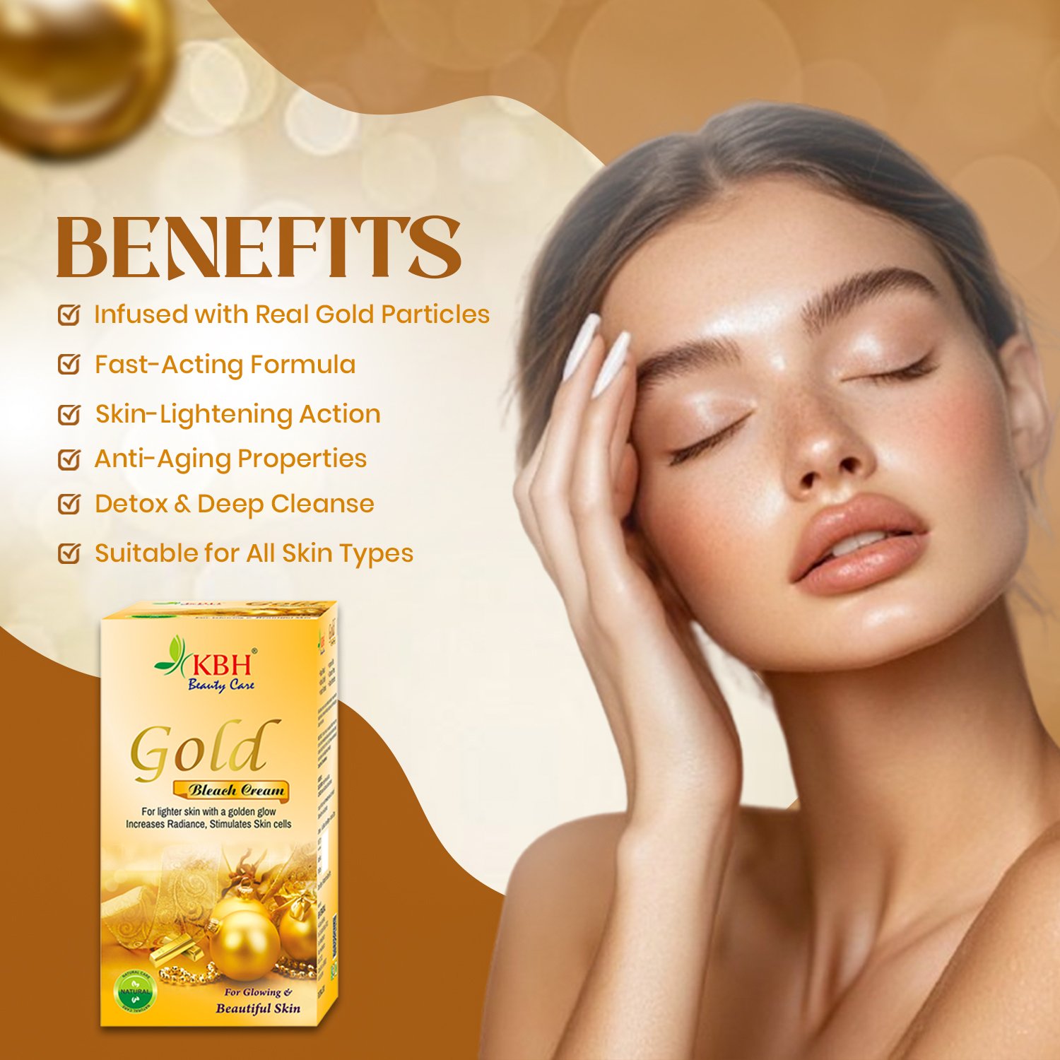 Bring out your skin’s golden glow with our Gold Bleach Cream — enriched with real gold extracts to lighten, brighten, and rejuvenate your complexion with a radiant shine.
