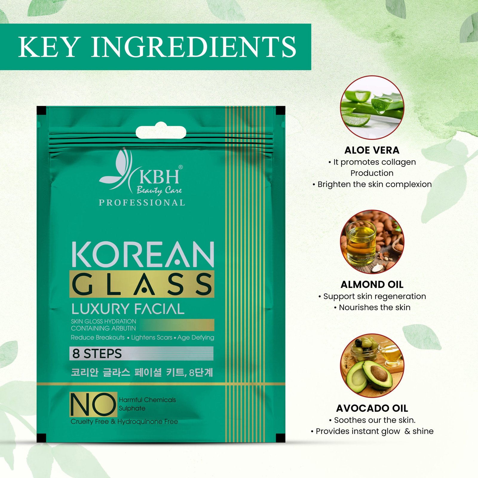KBH Korean Glass Facial Kit – 8 Step Facial Kit