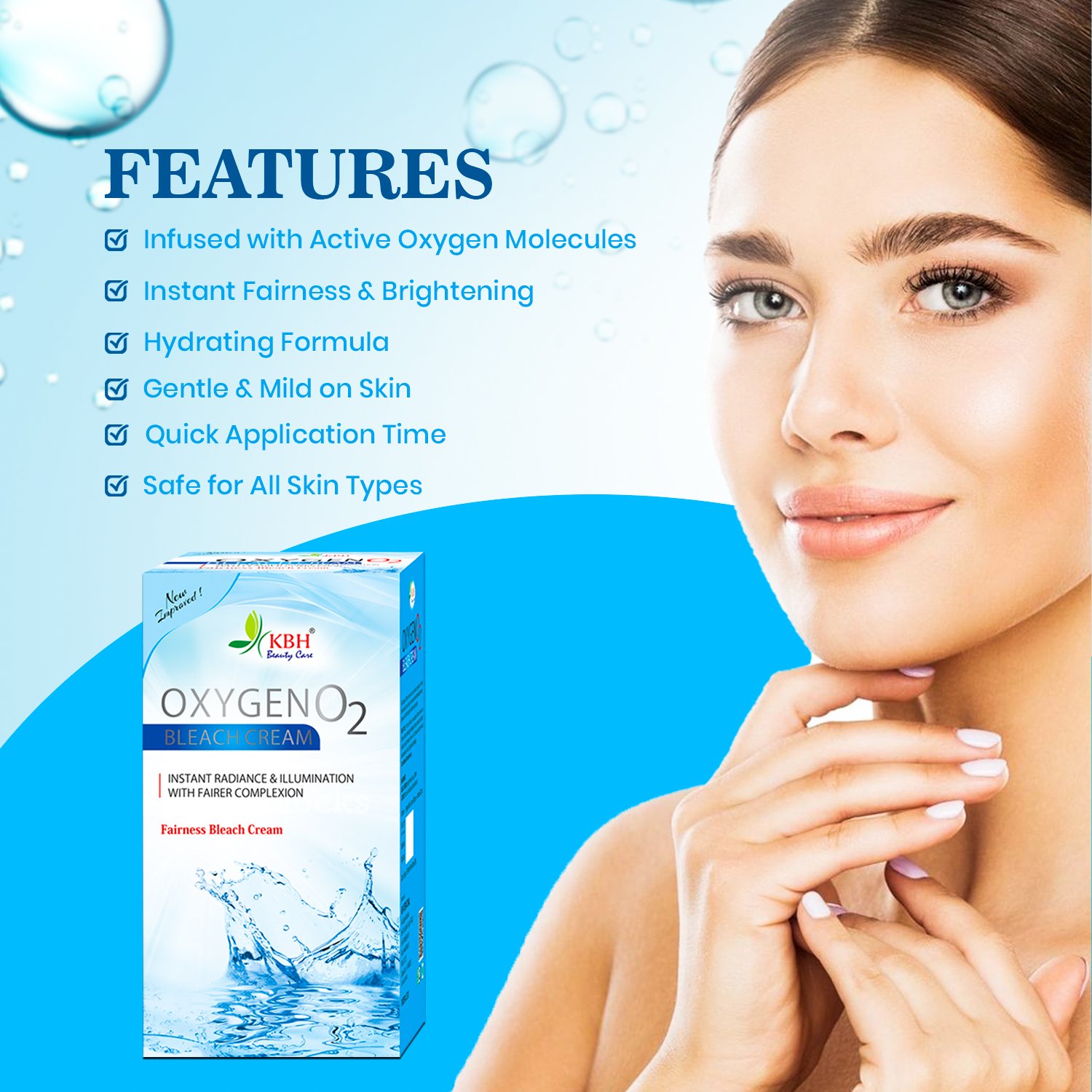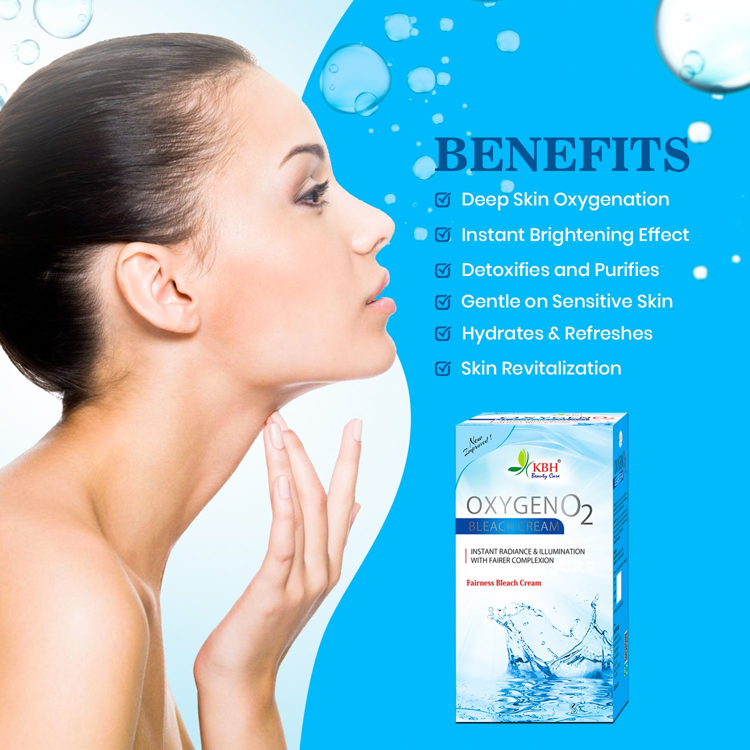 Revive your skin with the freshness of oxygen! The Oxygen O₂ Bleach Cream helps purify, brighten, and rejuvenate the skin for a clean, glowing, and refreshed look.