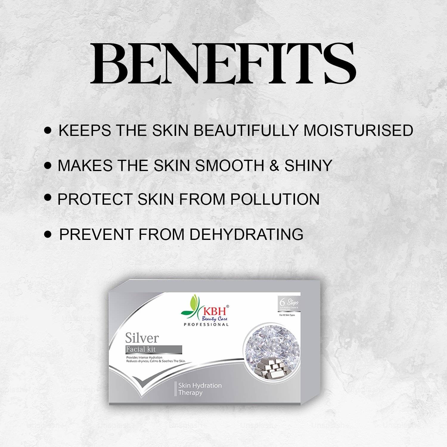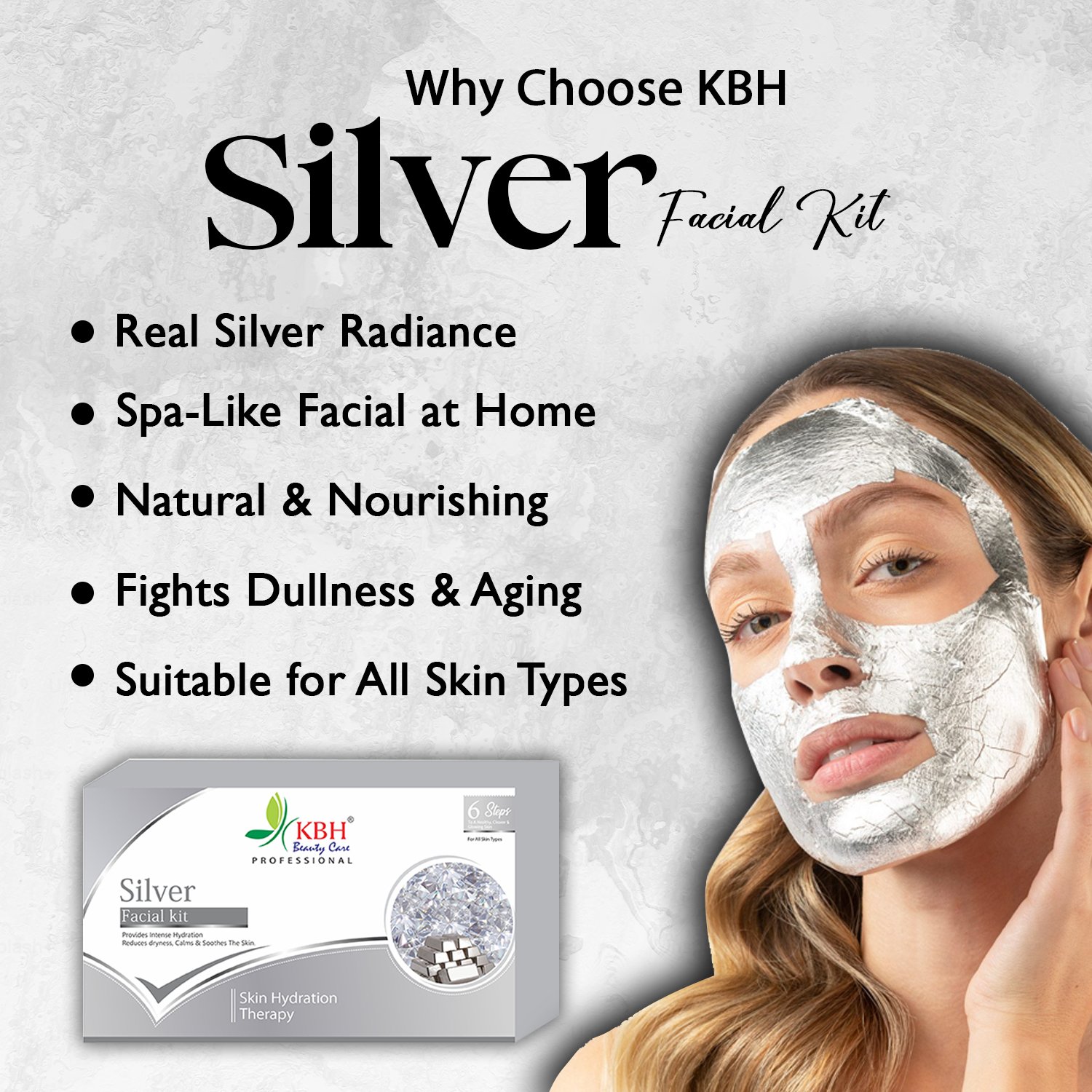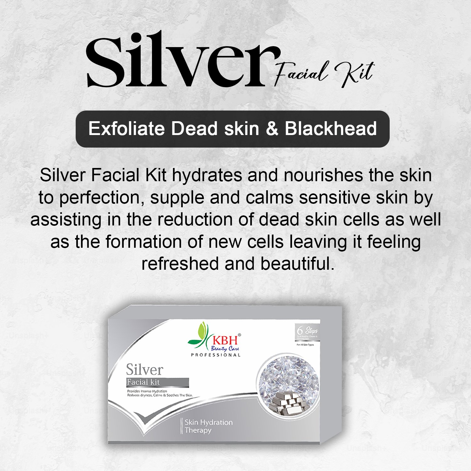 The Silver Facial Kit is formulated with silver extracts and natural cleansing agents that help purify, soothe, and rejuvenate the skin. It removes impurities, reduces dullness, and enhances natural brightness while maintaining skin moisture. This facial treatment leaves your skin soft, smooth, and glowing with a fresh, revitalized appearance.