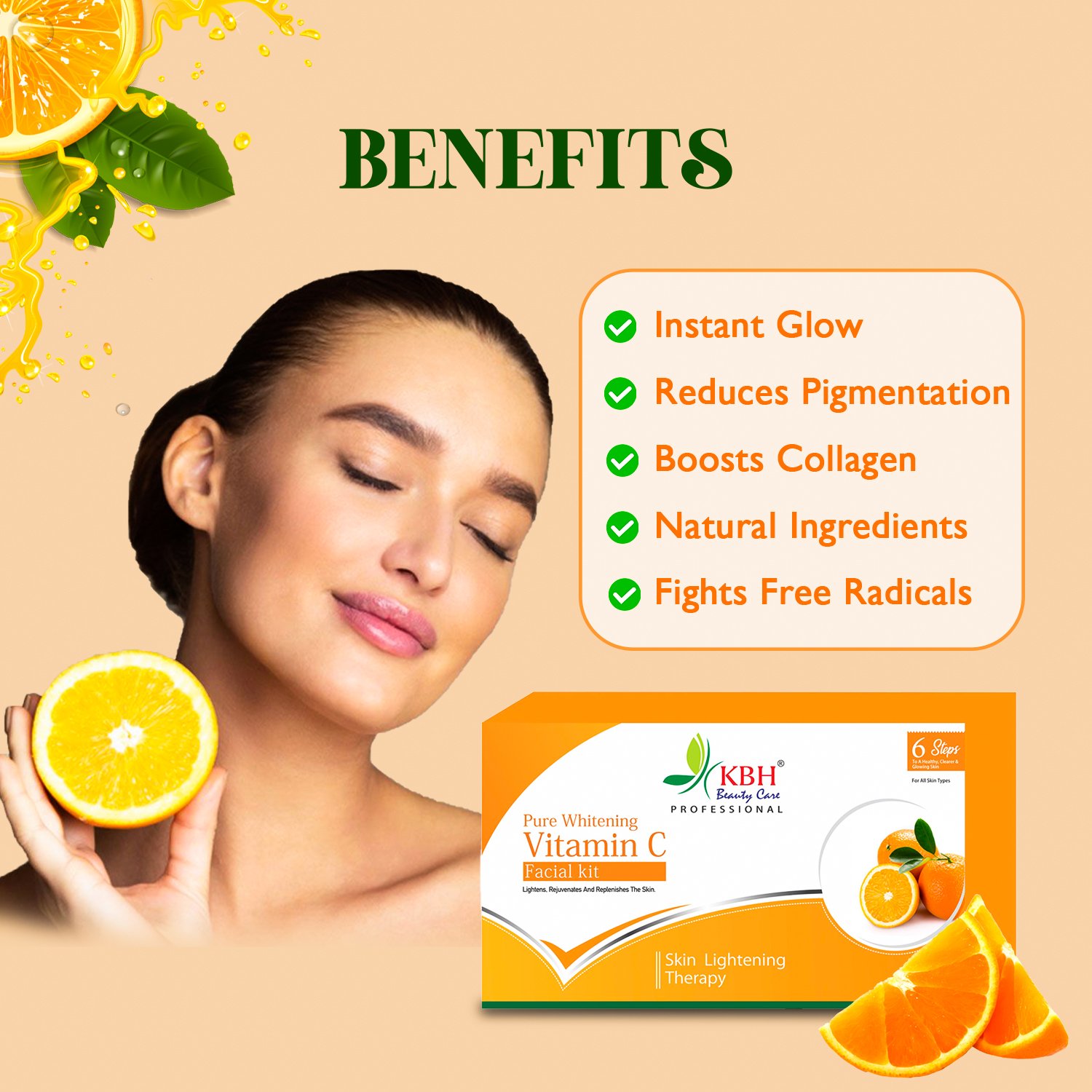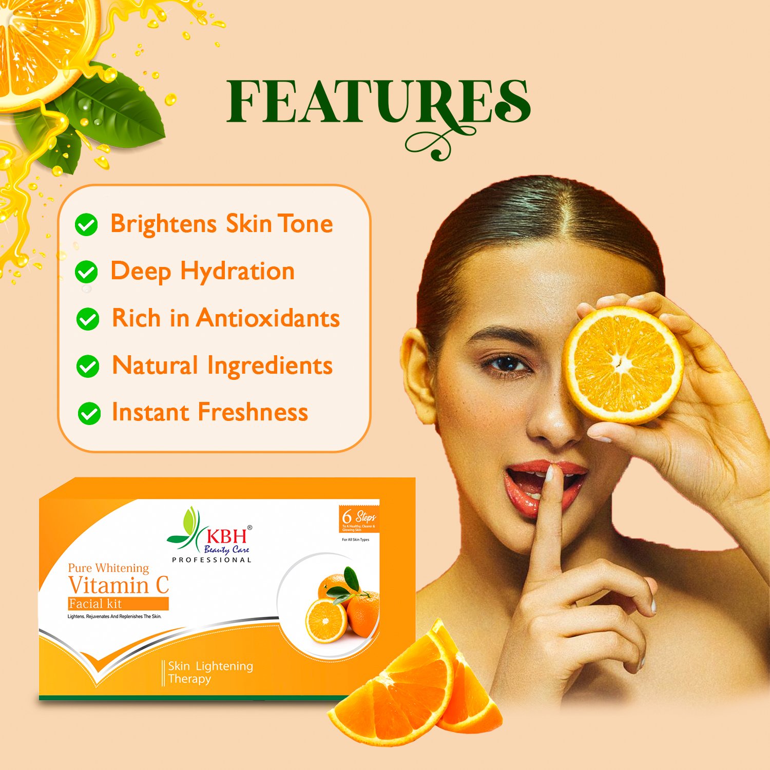 The Vitamin C Facial Kit is formulated with potent Vitamin C and nourishing ingredients that help brighten the skin, reduce dark spots, and restore natural radiance. It deeply cleanses, exfoliates, and rejuvenates the skin, leaving it soft, smooth, and glowing. Perfect for achieving a refreshed, youthful, and even-toned complexion.